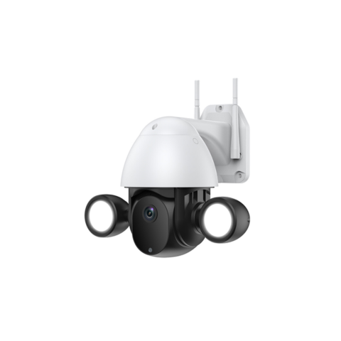 System | 3MP full-color PTZ Wi-Fi security camera; indoor/outdoor use; plastic housing; 350° pan and 90° tilt; supports app-based control and cloud integration. |