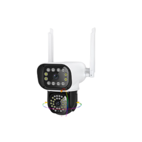 SystemDual-lens CMOS image sensor; outdoor use; metal/plastic hybrid housing; dual antenna Wi-Fi module; supports panoramic and PTZ linked view.