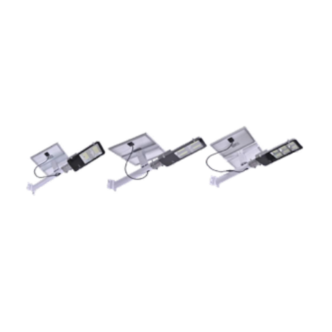 150–300 W solar street light with SMD5730 LEDs, 100–130 lm/W output, and die-cast aluminum housing for high-performance outdoor lighting.